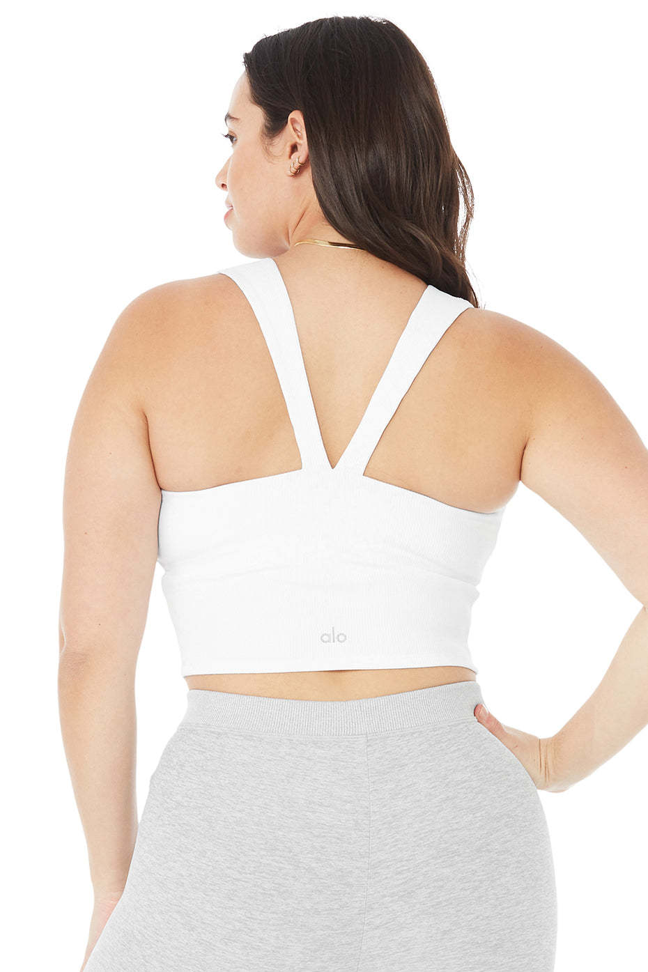 This look is literally everything. Made from soft, super-breathable athelosoft in a supportive, ribbed fabrication, the forward Chic Bra Tank,features a V-racerback, rounded square neckline & shelf bra lining for all-day support. We love it with a cool moto legging.