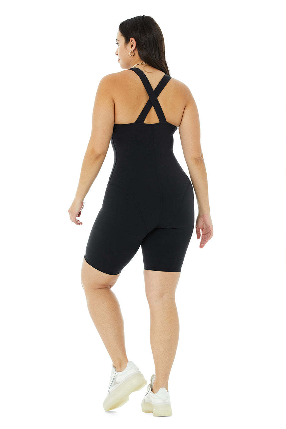 - V-neck, crisscross straps & biker length