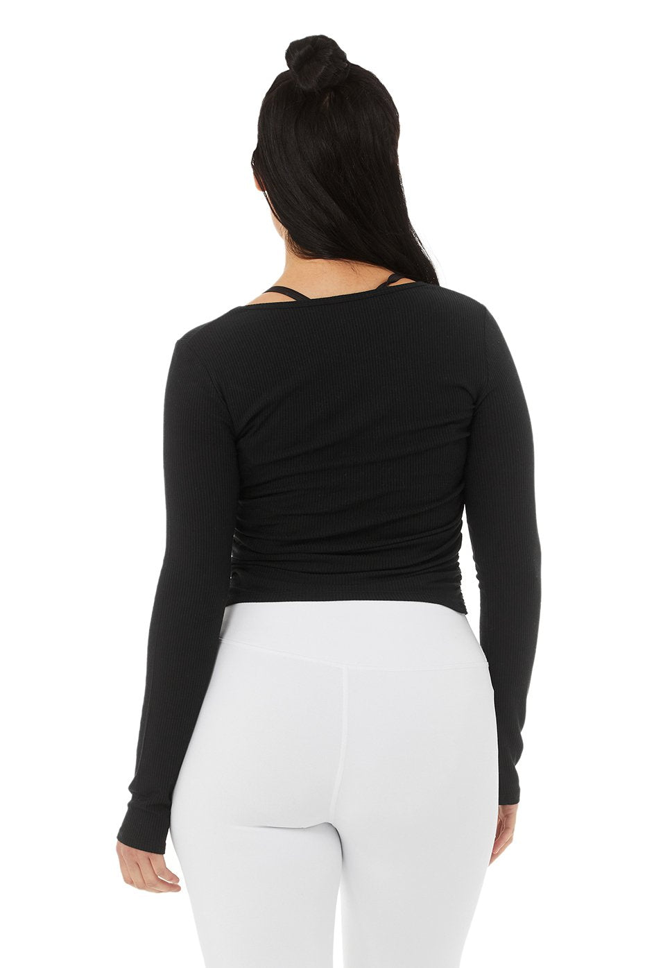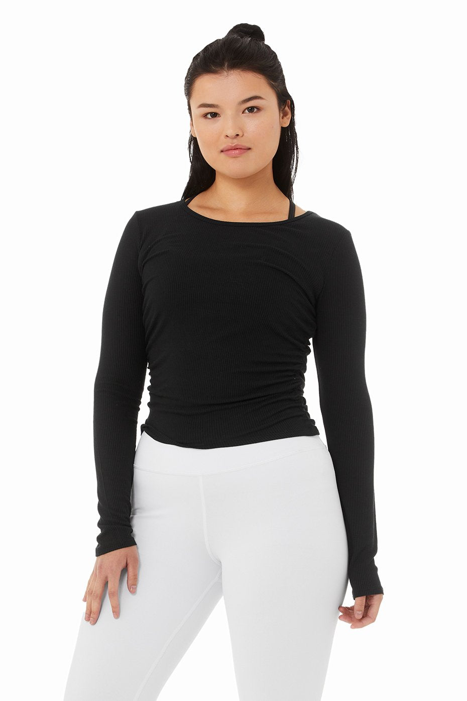 Put the ※warm½” in warm-up with the Gather Long Sleeve. It*s made with a soft ribbed knit and has a cropped, fitted silhouette and cute cinched sides. Pairs pretty with the High-Waist Goddess Legging.