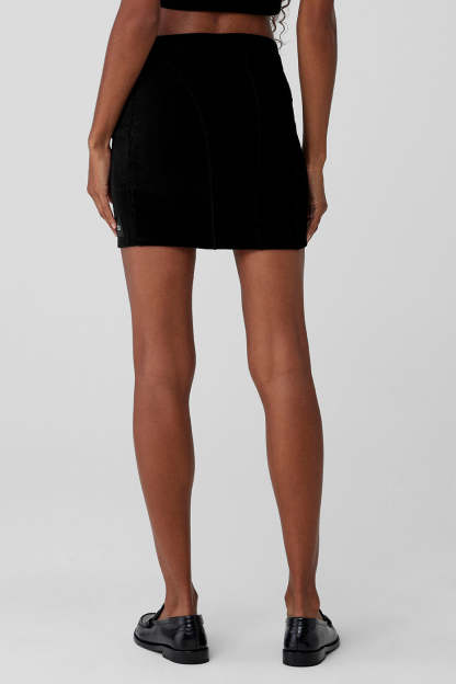 Because everything is cuter in corduroy, this form-fitting skirt is made from plush, ribbed corduroy with a high-rise waist and a hem that hits mid-thigh. Curved front seams add visual intrigue to the minimal design〞pair yours with the Winter Break Mock Neck in co-ord cord for all your upcoming holiday festivities.