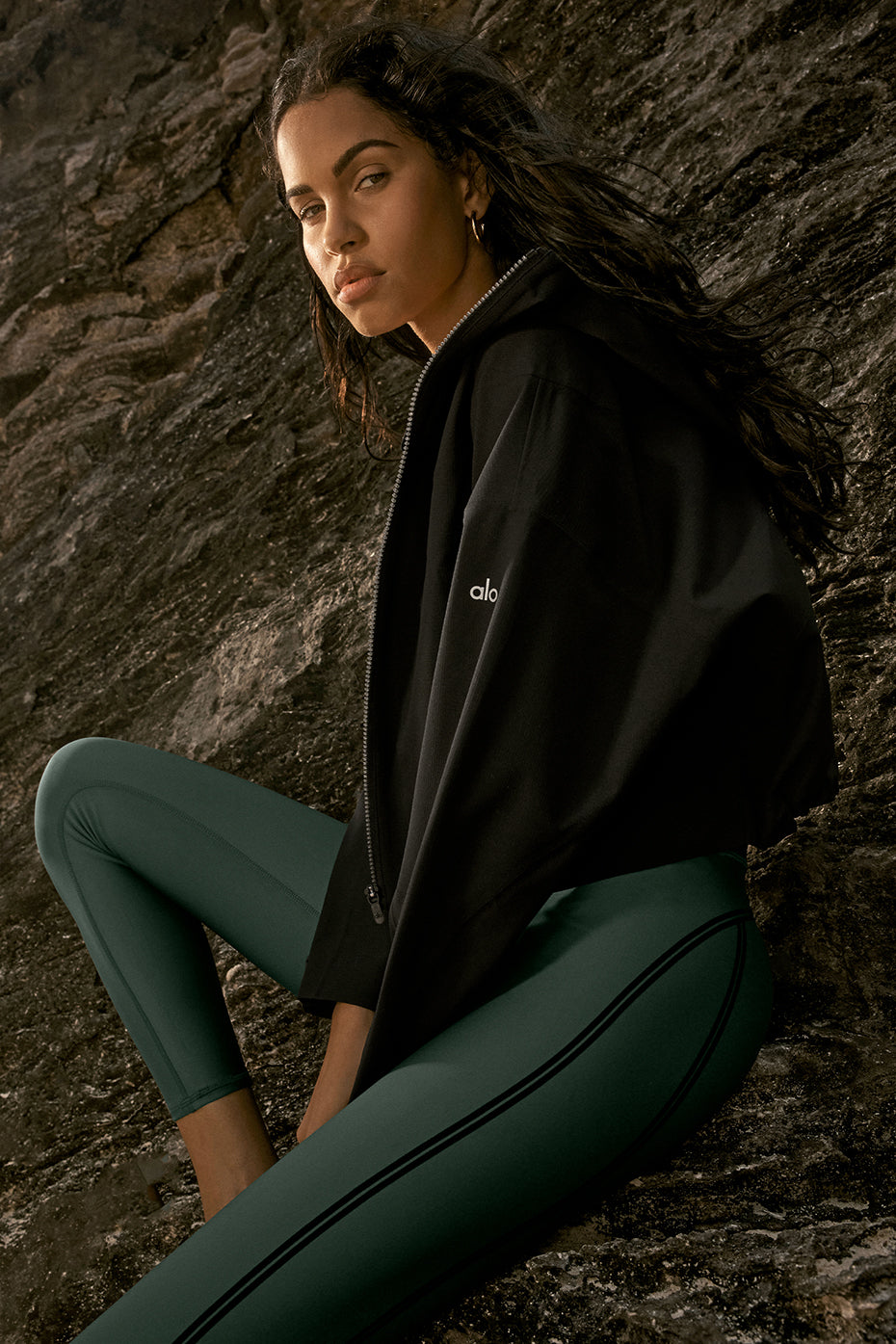 Shake off wet weather in this sleek rain jacket, made from lightweight, swishy-yet-soft, 100 percent waterproof bonded ripstop for peak protection against the elements. It has a classic fit with room for layering, a full front zipper, a 3-piece hood and a flattering hip-length hem. Zippered pockets, zippered cuffs and bungee hems score points for practicality. Save it for a rainy day〞or don*t, because it*s that cute.